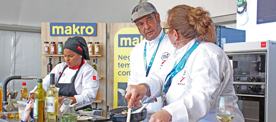 Numa edição dedicada aos Descobrimentos portugueses, nada melhor do que “abrir” o certame com um workshop que abordasse a influência dos mesmos no receituário. Em palco, atrás de tachos e panelas, estavam Maria Caldeira de Sousa (Casa da Velha Fonte, Castelo Branco) e Pedro Nobre (Tasquinha Alentejana, Cucujães) para nos explicar que a história da civilização humana também se faz de viagens gastronómicas.