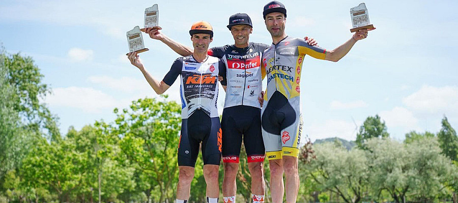 O último domingo do mês de maio foi pintado a ouro para a equipa Trepanelas/Prifer. Na Maratona de XCM de Torres Vedras, segunda prova da Taça de Portugal de XCM, Carlitos Ramos arrecadou a medalha de ouro no escalão de M40 ao vencer por uns meros 7 segundos. Mas contou! E assim subiram ao mais alto lugar do pódio as cores da equipa vaguense, que por pouco não repetiu o feito de figurar nos primeiros três lugares uma vez qu Jonathan Doutor, em M30, Sérgio Costa, em M55, e Abílio Moreira, em M60, ficaram todos no 4.º posto.