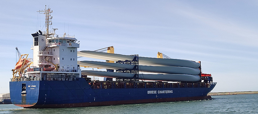 No período analisado, 41 navios atracaram no Porto para carregar esta tipologia de carga, representando um aumento significativo de 32 embarcações em relação ao ano anterior. Foram movimentadas 241 pás eólicas e 225 torres em 36 navios, marcando um feito histórico.